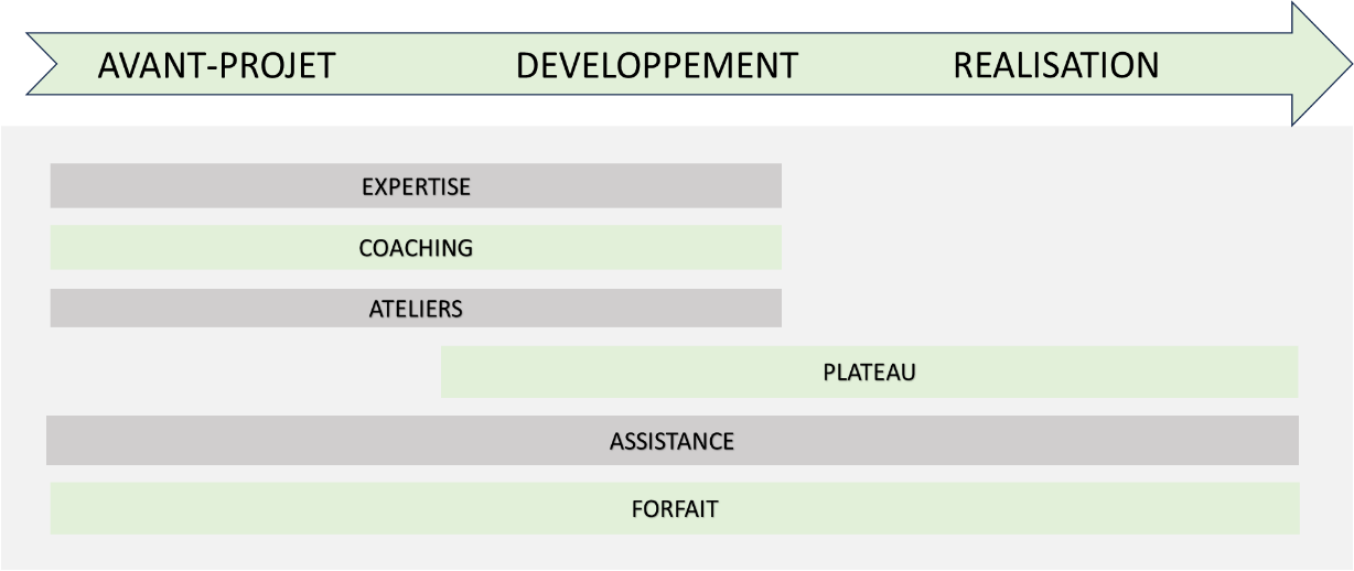 Nous pouvons vos accompagner sur toute la phase de vie de votre projet, des avant-projets au développement et la réalisation.